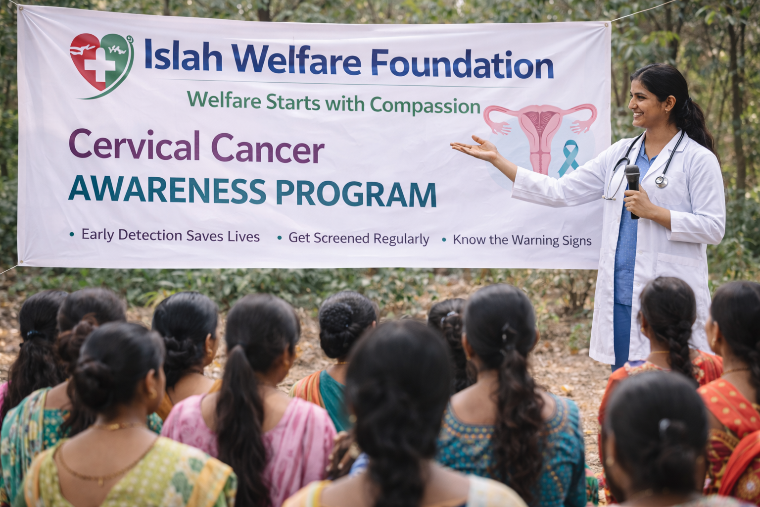 To address this critical issue, Islah Welfare Foundation conducts Cervical Cancer Awareness Programmes in villages to educate women, promote early detection, and encourage preventive healthcare practices.
